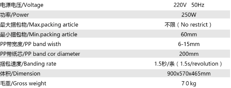 ◆打包機的用途 打包機是以聚乙烯塑料帶為捆扎材料,主要用于商業、郵政、鐵路、銀行、食品、醫藥、書刊發行等行業的紙箱、紙包件、柳編箱、布包件的包裝捆扎。 ◆打包機的工作原理 在插入包裝帶后,機器能自動完成聚帶、熱合、切斷、并出帶的捆扎過程;且有自動停機之功能;打包機是使用打包帶纏繞產品或包裝件,然后收緊并將兩端通過熱效應熔融或使用包扣等材料連接的機器,其工作速度快、效率高、省時省力、捆扎質量高。保證包件在運輸、貯存中不因捆扎不牢而散落,同時還應捆扎整齊美觀。 ◆打包機的特點 1、分離式上下滑板(相對一體式,故障率下降60%) 2、分離式出收帶輪(出帶輪組與收帶輪組是分開,直觀明了,相對一體式,故障率下降60%) 3、切刀更科學:V型切口,效果更好,壽命更長 4、外調松緊裝置,人手調整時松緊力時避免與機芯發生接觸而發生工傷事件 ◆打包機的工作流程 帶子送到位→收到捆扎信號→制動器放開,主電機啟動→右頂刀上升,頂住右帶于滑板處→“T”型導板后退→接近開關感應到退帶探頭→主電機停轉,制動器吸合→打包機退帶電機轉動,退帶0.35秒→帶子收緊捆在物體上→主電機二次啟動,制動器吸合→大擺桿二次拉帶,收緊帶子→左頂體上升,壓緊下層帶子→加熱片伸進兩帶子中間→中頂刀上升,切斷帶子→中頂刀下降→中頂刀再次上升,使兩帶子牢固粘合→中頂刀下降,左右頂刀同時下降→加熱片復位→滑板后退→“T”型導板復位→接近開關感應到送帶探頭→送帶電機啟動,帶動帶子送帶→大擺桿復位→帶子到位,帶頭頂到“T”型導板上接近開關感應到雙探頭→主電機停轉,剎車吸合→打包機完成一個工作循環。 ◆打包機的參數