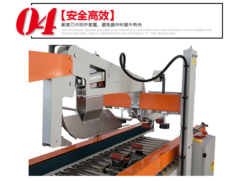 5該封箱機可單機作業(yè),也可與自動化包裝流水線配套使用。
